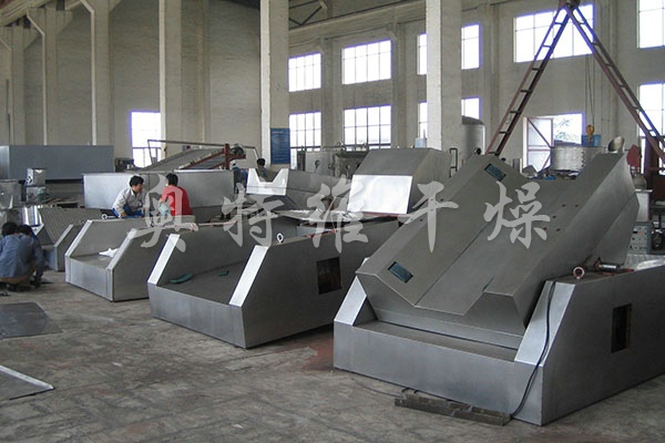 產(chǎn)品概述:二維混料機(jī)主要由轉(zhuǎn)筒、擺動(dòng)架、機(jī)架三大部分構(gòu)成。轉(zhuǎn)筒裝在擺動(dòng)架上,由四個(gè)滾輪支撐并由兩個(gè)擋輪對(duì)其進(jìn)行軸向定位,在四個(gè)支撐滾輪中,其中兩個(gè)傳動(dòng)輪由轉(zhuǎn)動(dòng)動(dòng)力系統(tǒng)拖動(dòng)使轉(zhuǎn)筒產(chǎn)生轉(zhuǎn)動(dòng),擺動(dòng)架由一組曲柄擺桿機(jī)構(gòu)來(lái)驅(qū)動(dòng),曲柄擺桿機(jī)構(gòu)在機(jī)架上,擺動(dòng)架由軸承組件支撐在機(jī)架